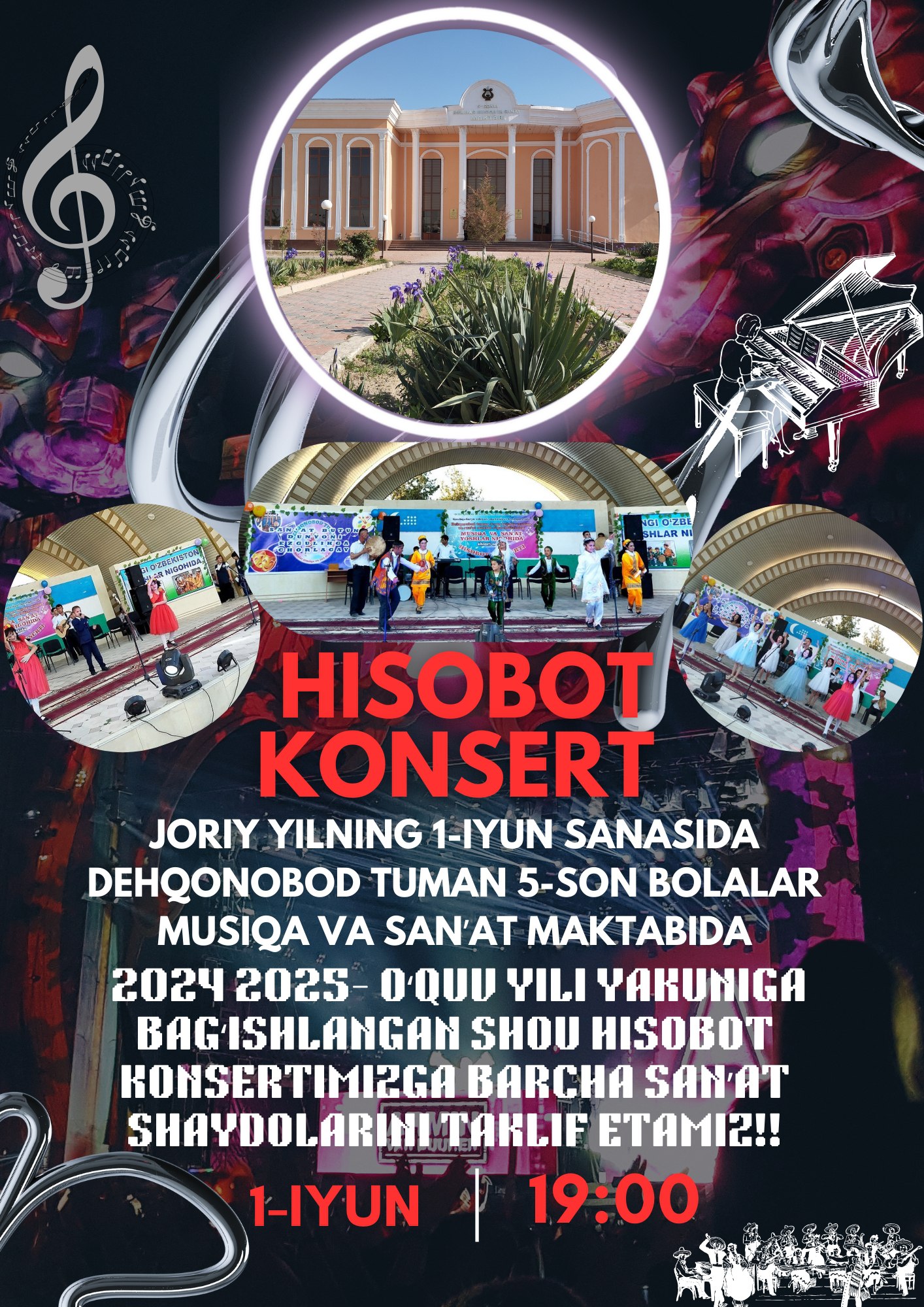 2024 2025- oʻquv yili yakuniga bagʻishlangan Shou Hisobot Konsertimizga barcha sanʼat shaydolarini taklif etamiz!
